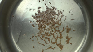 In a large medium-hot pot, add the vegetable oil and sizzle the cumin seeds for about 3-4 minutes.